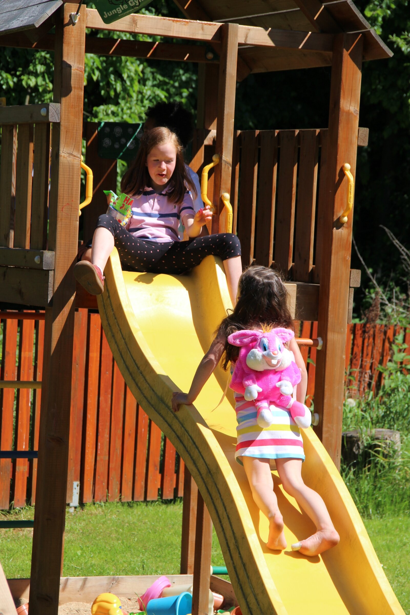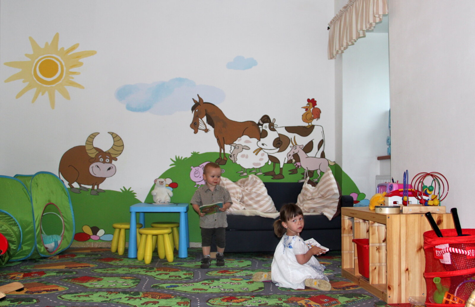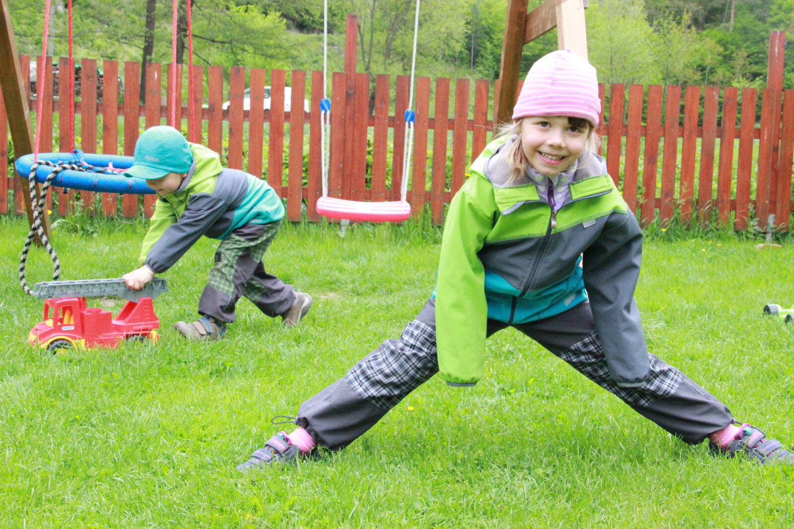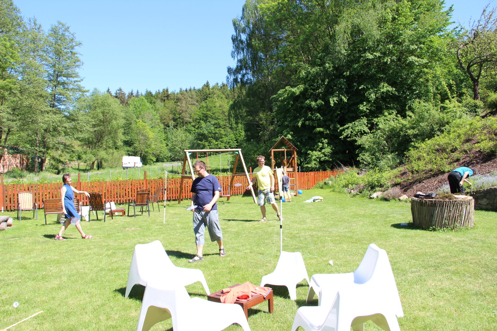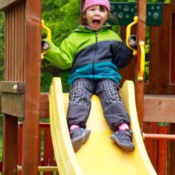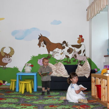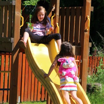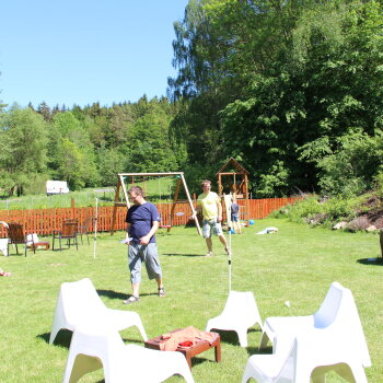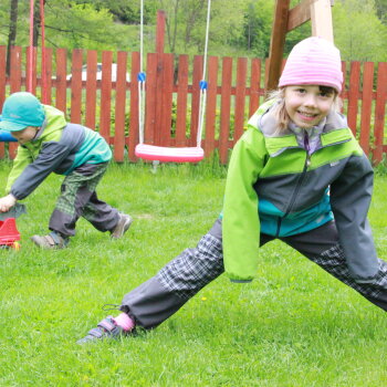 Obzvláště rodiče jistě ocení velký dětský koutek, který navazuje na společenskou místnost a v teplém počasí oplocenou zahradu s houpačkami, skluzavkou a trampolínou.