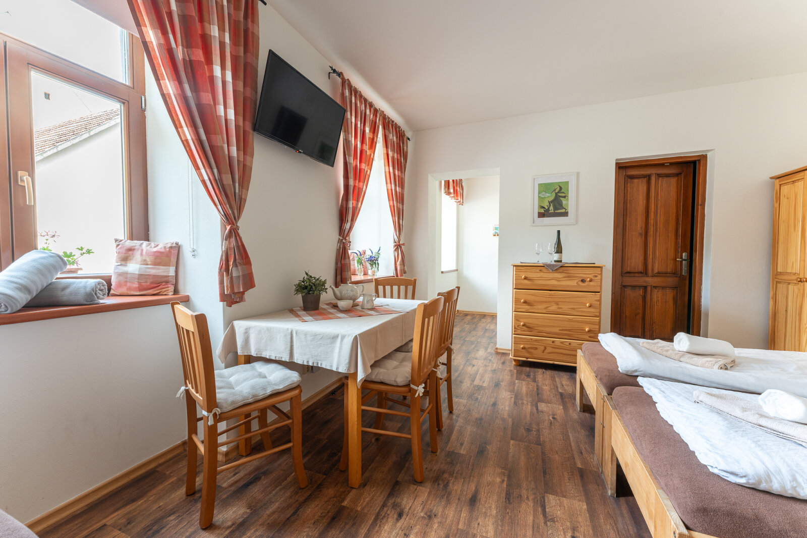 Poskytujeme i střednědobé ubytování na 1-5 měsíců v zimním období (listopad - duben) v plně vybavených minimalistických bytech 1+kk s vlastnstní koupelnou a WC.