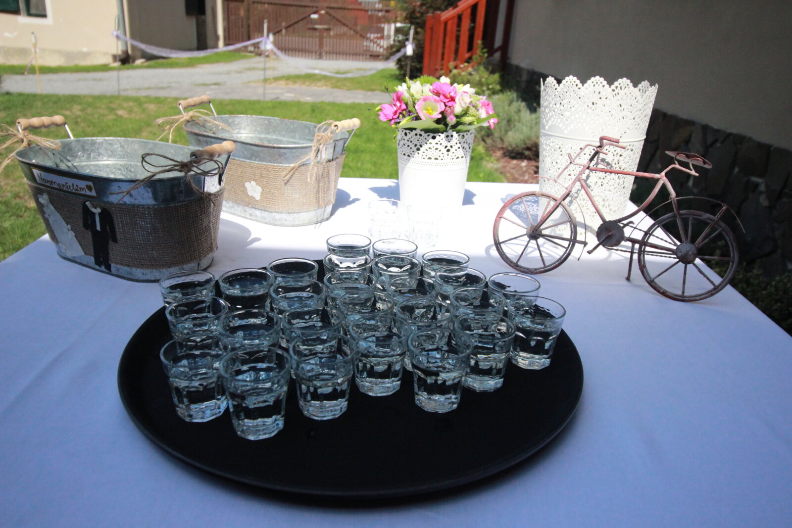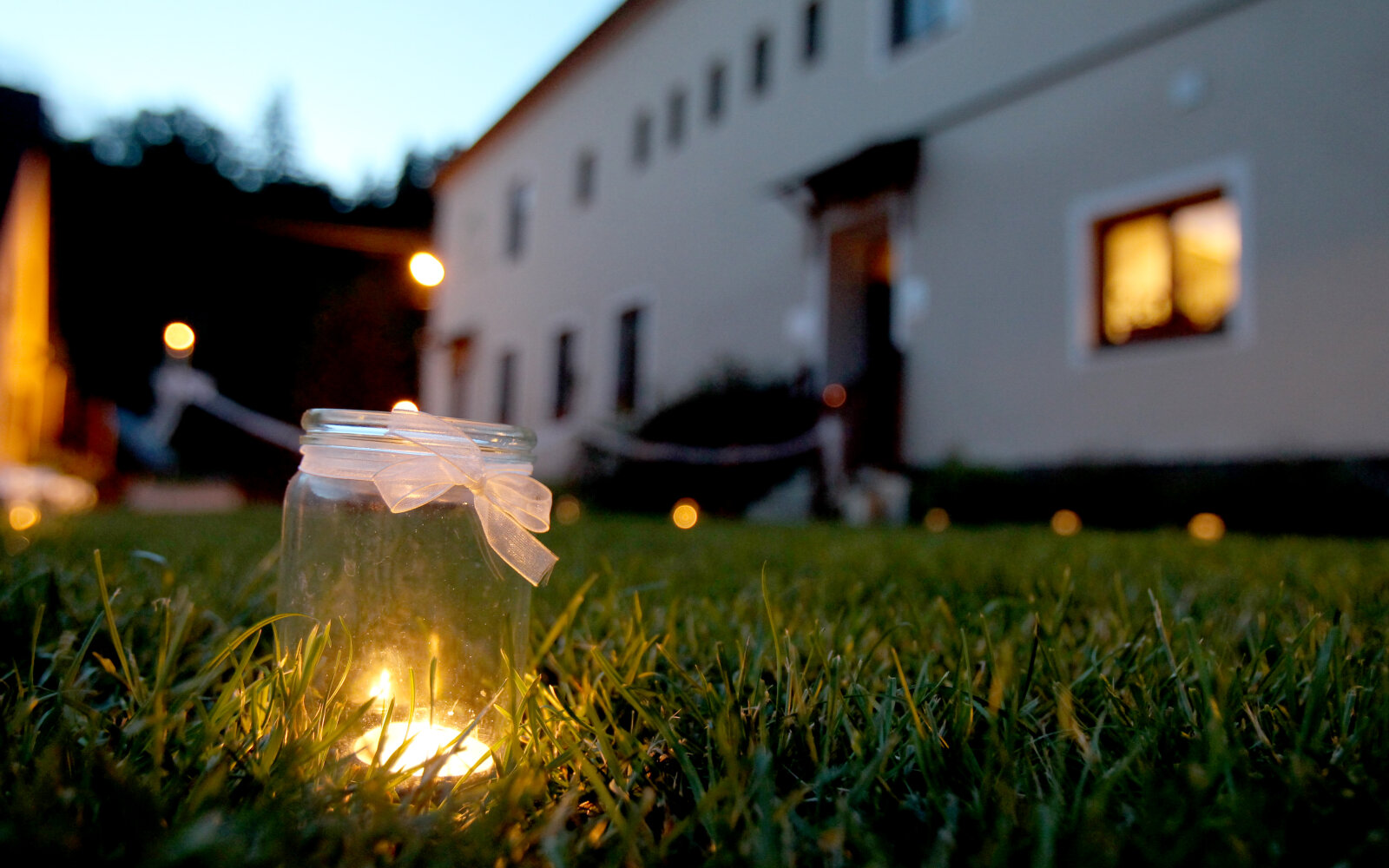 Venkovní prostory pak dekorujeme loučemi, svíčkami a stovkami světýlek. Iluze je tak dokonalá….